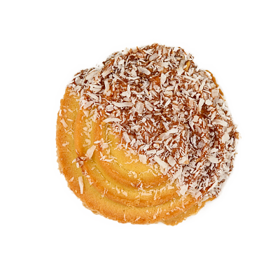 Печенье "Лаура" от компании "Петро-Кондитер" — ванильное колечко, с глазиром из какао, сверху украшенное арахисом и кокосом.
